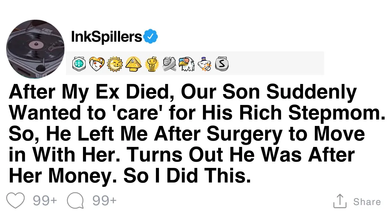 after my ex died our son suddenly wanted to care for his Rich stepmom so he left me after surgery to move in with her turns out he was after her money so I did this I 50F never thought I would be writing a post like this about my own son Oliver 25m I guess I should start from the beginning I met my ex-husband Mark when I was 20 and we got married a year later we were happy or at least I thought we were until he met Linda 60f at his workplace when Oliver was 10