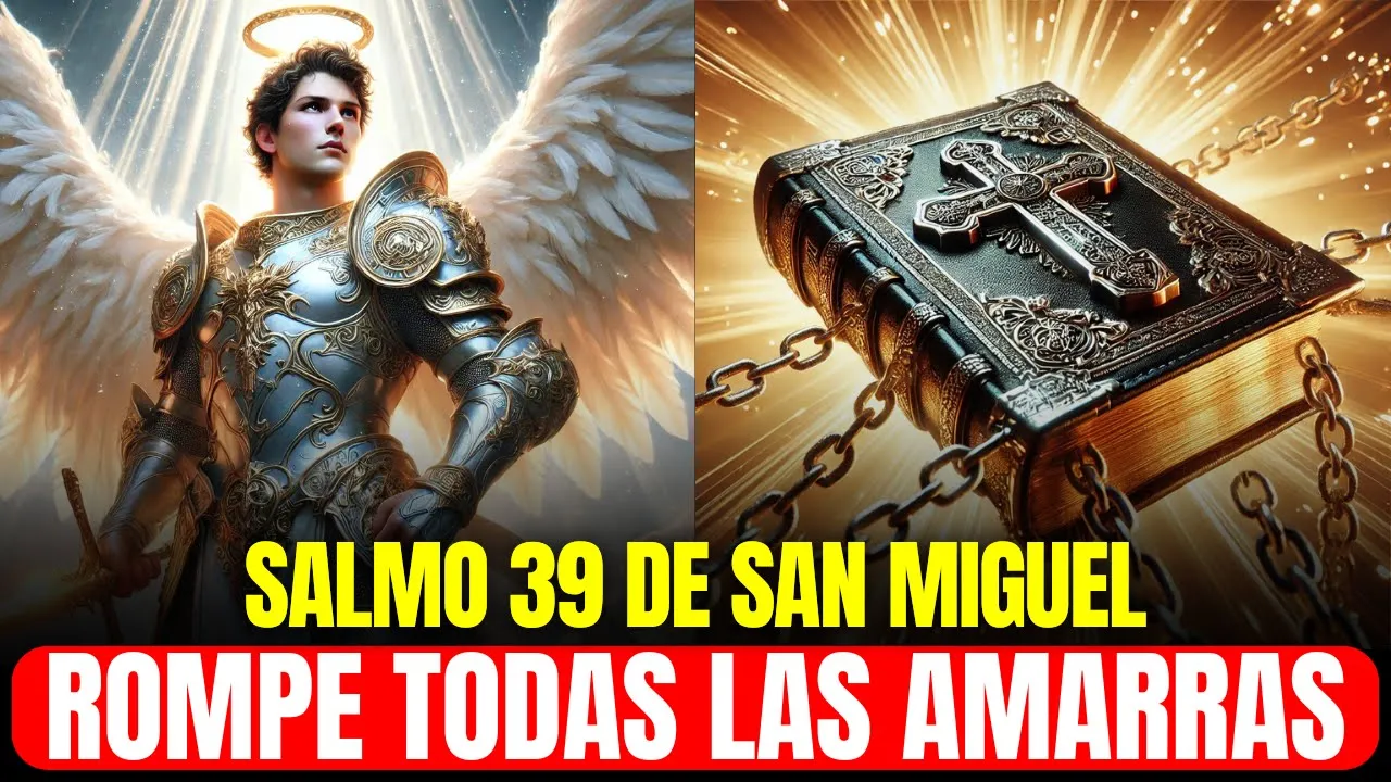 Haz Esta oración hasta el final y experimenta el inmenso poder de San Miguel Arcángel junto al salmo 39 una poderosa combinación para romper cadenas disipar maldiciones y protegerte de todas las fuerzas del mal como nos enseña el salmo 39 esperé pacientemente en el señor él se inclinó hacia mí y escuchó mi clamor hoy nos unimos en fe para invocar esta verdad dejando que San Miguel Arcángel sea nuestro defensor destruyendo todo mal y abriendo los caminos que han estado bloqueados Esta oración es una herramienta de liberación un canal para que San Miguel líder de los ejércitos