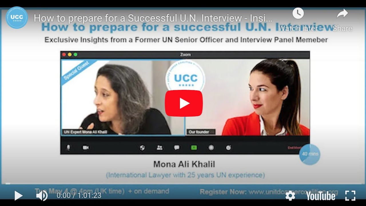 type the the video the zoom or Skype or teams type of interview it's very important where your camera angle is and it's very important that you're seen to be looking into the camera often people take the interview with the camera on one side of them so we're getting a profile rather than a front-on so make sure your camera is front on make sure your background is uh tidy and appropriate and sensible and make sure what you're wearing is something that is commensurate with the position that you're being interviewed for and typically in the United Nations