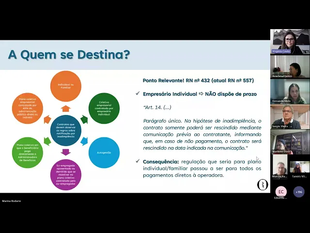 pode passar e aí um ponto relevante Por que que todo o o o o problema regulatório ele veio com a súmula 28 que era só de plano individual e depois ele foi ampliado para qualquer beneficiário que paga a mensalidade para operadora essa discussão toda ocorreu por conta de Quando foi publicada a norma de empresário individual existia dentro da NS duas posições muito grandes com relação à Norma de empresa individual ser uma extensão da contratação individual e familiar e não a coletiva Empresarial eh e aí então tentaram publicar uma Norma que é RN 432 que hoje