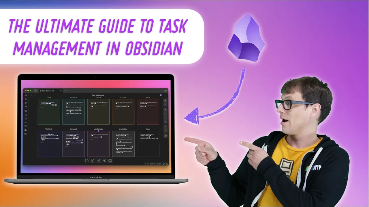 plain text task management is not for the faint of heart but if you're willing to put in the work obsidian is flexible enough to craft the perfect workflow to meet just about any task management need so after trying just about every other task manager on the planet I eventually ended up in obsidian because nothing else did exactly what I wanted I've dialed in my workflow over the last 12 months or so and I finally have it to a point where it's ready to share so in this video I'm going to walk you through not only my obsidian based workflow but also my whole task management philosophy so that you can use what I did as a springboard to craft your own task management workflow in your obsidian Vault now let's start by talking about who should not try to use task management in obsidian if you rely on reminders to get things done then obsidian task management is not going to be for you yes you can Cobble things together like system level notifications on the desktop but it's pretty much impossible to get these notifications on your mobile device so if you need notifications for your task management workflow especially location-based reminders then you want a dedicated task manager instead now fortunately there is a great plugin called to-do sync that lets you add your todoist tasks to your obsidian notes using to-do filters which are all created in to-do by using text Bas symbols this plugin works as a two-way sync with to-do so you can view your tasks in obsidian as well as add new tasks or Mark tasks as complete and have those changes sync directly to todoist so it gives you the best of both worlds you can have your location based reminders in the to-do app and you can manage them from obsidian but I actually don't do this because I prefer to think of my task manager as the brain and I want to create my own list of things that I want to work on every day I basically use my task manager as the recommendation engine for the things that I should think about doing but then I pick three to five things to work on from that list and I write them in my time block plan for my day and that additional friction results in me having more realistic plans and I believe higher levels of long-term productivity it's the consistency that's more important than the intensity when it comes to getting things done now there are a couple other drawbacks to using obsidian for task management though so make sure you're good with these before you continue for example you will also lose the ability to attach notes to your task now this sounds a little ridiculous seeing as how obsidian is essentially a Notes app but the way that tasks work in obsidian requires you to put the entire task on a single line of text which means that the task must include the name due date and any metadata on a single line so if you often create to-dos and then rely on that notes field to type a bunch of notes for context that's not going to work in obsidian you also can't have subtasks in obsidian because each line is independent you can't Nest subtasks underneath a parent task like you can in a dedicated task manager now the way I get around this is by using checklist which I'll walk through in a little bit but if you rely on subtasks for your task management workflow then obsidian task management is going to be difficult now why would anyone want to craft their own task management system inside of obsidian after all those caveats that I just shared well there are two big reasons the first one is that you can link your tasks and your notes together easily and this is great if you do a lot of creative work like I do and all of your writing is in obsidian already yes you can link things together using URL schemes or apps like hook Mark but nothing beats having all of these things in the same app if you can pull it off now the other big benefit is that you have complete control to craft your own system all the building blocks are there for you as long as you're willing to learn how to craft your own queries there really is nothing quite as flexible if you want to craft your own workflow that's why I've spent a bunch of time creating the system that I'm going to show you in this video now I've tailored this specifically to my needs but I believe there's going to be lots of inspiration here for you as you take the principles and you craft your own obsidian based task management system before we do that though there's one more big roadblock we have to overcome if you decide to give task management in obsidian a shot there's a mindset shift that you will have to embrace before it will really click and that is that the location of your task inside of your obsidian Vault don't really matter now this is going to feel weird at first probably because most task managers have an inbox where things are collected and then you can move tasks to a specific project much like a folder in the finder but I believe effective task management in obsidian depends entirely on queries and metadata so you have to disconnect from this location based thinking you have to think of obsidian kind of like a database where you just dump things in and then you create queries that search the contents of that database and return a list of things that match certain criteria and while you can use folder locations as a filter moving tasks in obsidian from one note to another requires manual copying and pasting it's a lot of effort it's not worth it please don't do it so the better way to hand task and obsidian is to completely disconnect from the idea of task location and just keep everything in one big list that way you can capture tasks from anywhere in your Vault and then you can have them be appended to the top of the list which I'll show you how to do in a little bit this eliminates the friction of deciding where something should go and it makes it easier to capture things when you need to now I do have a couple of exceptions to this though first I have a separate list of tasks