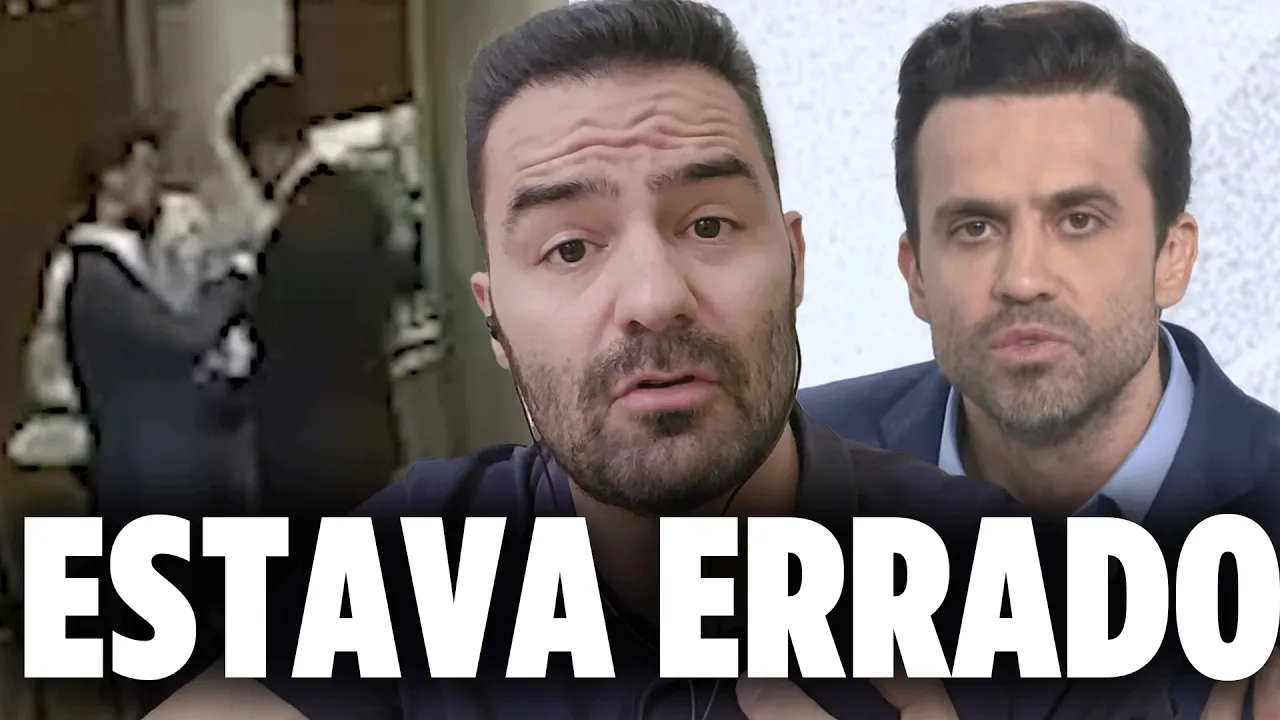 e fugiu aí agora tem um vídeo que tá o Pablo Marcial e um outro cara rasgando a camisa do Maluco para falar que ele que foi agredido Primeiro só que o vídeo vazou irmão olha aqui ó imagin da câmera de segurança do Esporte Clube Siro mostram que o videomaker n ruel Medina envolvido no episódio de agressão durante os debates do candidat à prefitura no flow pode ter forjado os ferimentos que diz ter sido vítima Medina deu o soco no rosto do marqueteiro Prefeito Ricardo Nunes do da Lima né em poções sociais tá tá tá tá