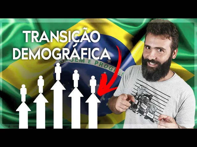 mortalidade elas eram muito elevadas na primeira fase nós vamos ter a queda da mortalidade na segunda fase e a queda da natalidade na terceira fase Então eu tenho um comportamento que vai ser muito interessante o mais legal aqui é que a gente vai conseguir fazer uma comparação e uma análise dessas quedas dos indicadores de natalidade e mortalidade ao longo né desse processo em vários países entender como que isso funcionou no Brasil presta bastante atenção aqui hoje nós vamos então falar sobre o processo de transição demográfica brasileiro Então você vai virar para mim e vai falar