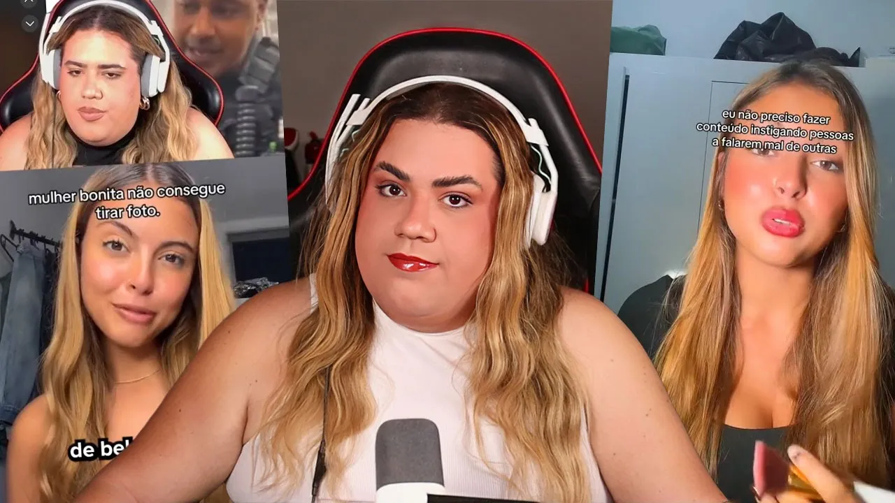 irem xingar a minha aparência um tempo atrás aqui no tiktok teve uma Trend que era assim eu sou uma mulher de beleza alta então é claro que eu sou lira dos olhos azuis etc e tal e é óbvio que essa Trend era ridícula peguei essa frase falei no começo do vídeo eu sou mulher de beleza alta então é claro que E logo depois eu falei gente é óbvio que eu nunca participaria de uma Trend ridícula dessa eu só usei o gancho do beleza que estava sendo referenciado nessa Trend falei não mas já falando sobre beleza
