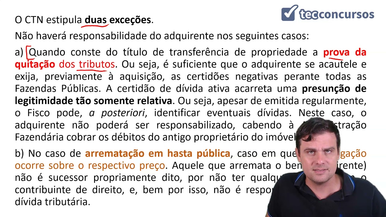 responsabilidade dos sucessores do artigo 129 133 no próximo vídeo veremos a responsabilidade de terceiro no artigo 134 135 e a responsabilidade por infrações do artigo 168-a que uma observação né que a a técnica à a determinação a distinção de que a responsabilidade por infrações onde vc esse nome a responsabilidade gente tá falando de uma de uma troca de uma substituição de uma transferência enquanto que na verdade o infrator ou é ele mesmo que a responsável Mas tudo bem vamos analisar aí nesse momento é oportuno ai tá E aí até a gente vai ter Portanto vamos
