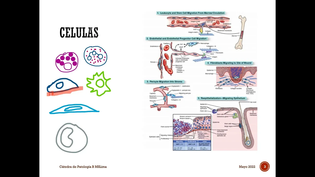 y secretas moléculas que promueven la reparación como es el tumor growth factor beta fibroblastos mío fibroblastos felicitos y músculos lisos 11 las mesenquimáticas que son reclutadas y que también vienen desde la médula ósea están encargadas de la síntesis del colágeno de la remodelación y de la contracción de la cicatriz tenemos células endoteliales también que como observamos a la imagen van a nacer de brotes de mb nulas post capilares o de precursores de la médula ósea y son los formadores del tejido de granulación y finalmente los epitelios las células epiteliales que se van a restaurar la