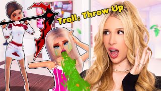 instead of like like that. So, let's find out. My goal is to at least troll 10 people. So, we're already down one person. We got nine more to go. Wait. Okay, this looks so much better. Okay, I have to run so people don't see me. Uh-oh. No. Get away from me. She's suspicious of me. We got to wait till timer's up so I can reveal myself. Hopefully the murderer doesn't just like reveal themselves right away because I need to do that first. Wait, no. Murderer got me. That wasn't supposed to happen. Oh crap. I almost