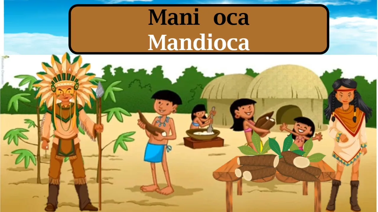 e Hoje iremos ouvir a Lenda da Mandioca uma história de origem indígena a mandioca aipim ou macaxeira é a raiz de uma planta e com ela nós conseguimos fazer muitas coisas gostosas bolo de mandioca mandioca frita sopinha muitas coisas gostosas os índios foram os primeiros a descobrir e utilizar a raiz dessa planta como alimento e eles têm uma lenda sobre a existência dela como será que a mandioca surgiu e esta história começa assim ou Cacique da tribo vivia esperando o dia em que ele se casaria e teria uma linda filhinha este cheiro sonho do Pajé