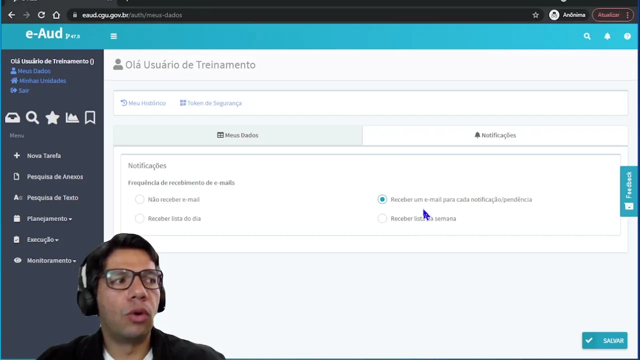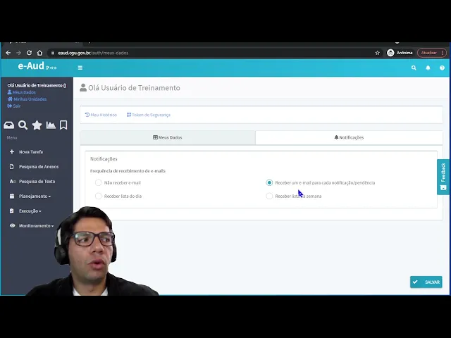 todo ontem Ok então esse é o histórico vou voltar aqui eu os dados e a gente explorar todas as funcionalidades aqui de os dados você tem acesso aqui as ao seu e-mail e o seu telefone você pode fazer alteração dessas informações e quando em salvar o sistema já registrou alterou o seu e perder o seu filho depois você pode dirigir salvar e notificações a outra questão importante é o nome da pessoa CPF é e outras informações importantes eles são captados diretamente as vozes de públicos do governo federal Então você fez o cadastro na hora que