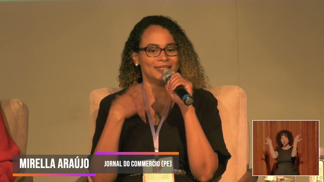 do prêmio Claudio veber Abramo de jornalismo de dados na categoria inovação e experimentação em 2022 para mediação desse papo chama a jornalista de dados Jamil Santana que é coordenadora da escola de dados programa de alfabetização em dados da Open Brasil lembro que as perguntas podem ser enviadas a qualquer momento através do QR Code que está atrás do Crash de vocês pelo chat da plataforma de quem nos acompanha de forma remota [Música] Olá boa tarde a todas as pessoas que estão aqui hoje eh vou fazer uma udio descrição eu sou a Jamile Santana sou uma mulher