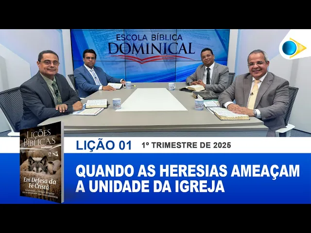 em seu programa Escola Bíblica Dominical Esta semana estudando a primeira lição do novo trimestre que tem como título quando as heresias ameaçam a unidade da igreja e no bloco anterior nós fizemos apresentação de nossa lição aqui a partir da apresentação do próprio Pastor Ezequias no livro de apoio e queremos rapidamente né fazer uma apresentação aquele ping-pong que nós fazemos todo início de trimestre nós vamos aqui apresentar né a lição em defesa da fé cristã combatendo as antigas heresias Que se apresentam com nova aparência e na lição de número um nós estamos estudando né as heresias