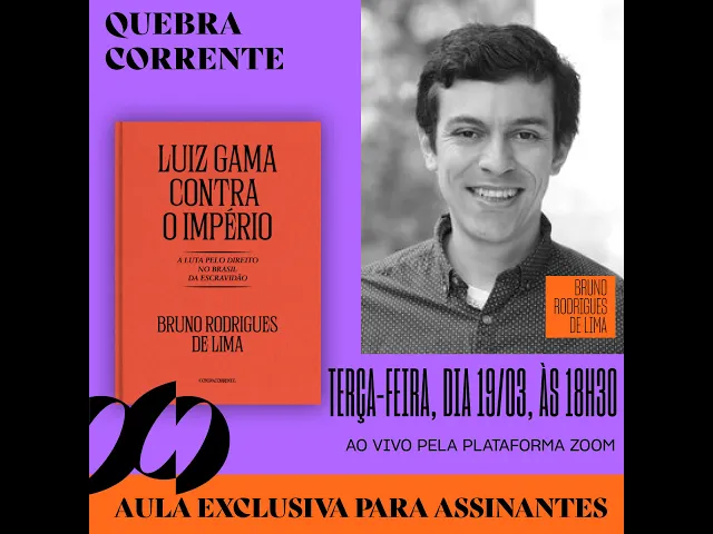Olá a todos e a todas é um grande prazer receber vocês hoje novamente aqui na nossa aula exclusiva do Quebra Corrente para uma aula muito especial com o professor e amigo Bruno Rodrigues de Lima e é o mais novo autor da nossa Editora né ele escreveu um livro lindíssimo sobre um dos maiores brasileiros de todos os tempos o luí gama o nome do livro fruto de sua premiada tese de doutorado defendida na Alemanha é muito forte Luiz Gama contra o império O livro é tão bom e tão relevante que ele é prefaciado pelo Ministro de
