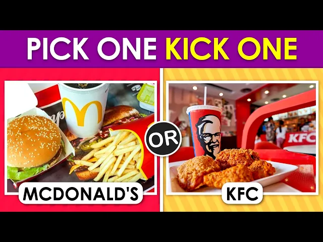 welcome back friends today we will play pick one kick one junk food edition before we get into the video please like this video and subscribe to our channel alright let's get started pick one kick one popcorn or puff corn [Music] pizza hut or dominoes [Music] pick one kick one french toast or waffles which one do you pick starbucks or duncan [Music] [Music] burrito or fried chicken [Music] pick one kick one mcdonald's or kfc [Music] which energy drink do you pick and kick monster energy or red bull [Music] pick one kick one kid cat or m