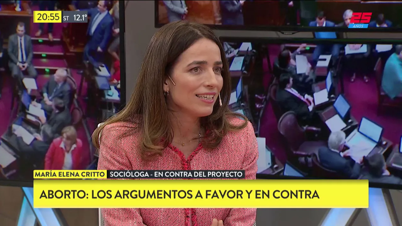 hoy en argentina sin ley con las causales vigentes por el código penal de 1921 redactado por hombres y aprobado por un congreso compuesto en su totalidad por hombres estipula que el aborto no es un asesinato porque si no sería un asesinato agravado por el vínculo encima estipula derechos digamos incrementales para para la persona música obviamente vamos a darle una mujer que quiere continuar su embarazo que darle ácido fólico hay que darle todas las ventajas pero hoy sin ley con las causales vigentes si una mujer quiere interrumpir su embarazo lo interrumpe clandestina e insegura mente no