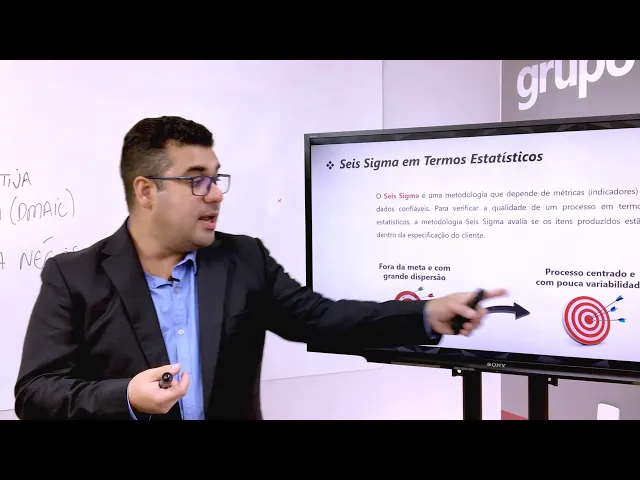 nos remete a um processo muito instável pouco confiável que provavelmente não vai estar produzindo dentro das especificações desejadas já a baixa variabilidade me fala de um processo que confiável estável onde eu tenho uma chance muito alta de estar produzindo dentro das especificações desejadas por isso que eu sei sigma tem esse viés quantitativo estatístico isso é importante dentro da metodologia e nessa figura a gente percebe a gente ilustra né a importância dessa questão estatística ea importância da questão da variabilidade né aqui pelo alvo então é como se eu tivesse um processo com muita dispersão muita variabilidade