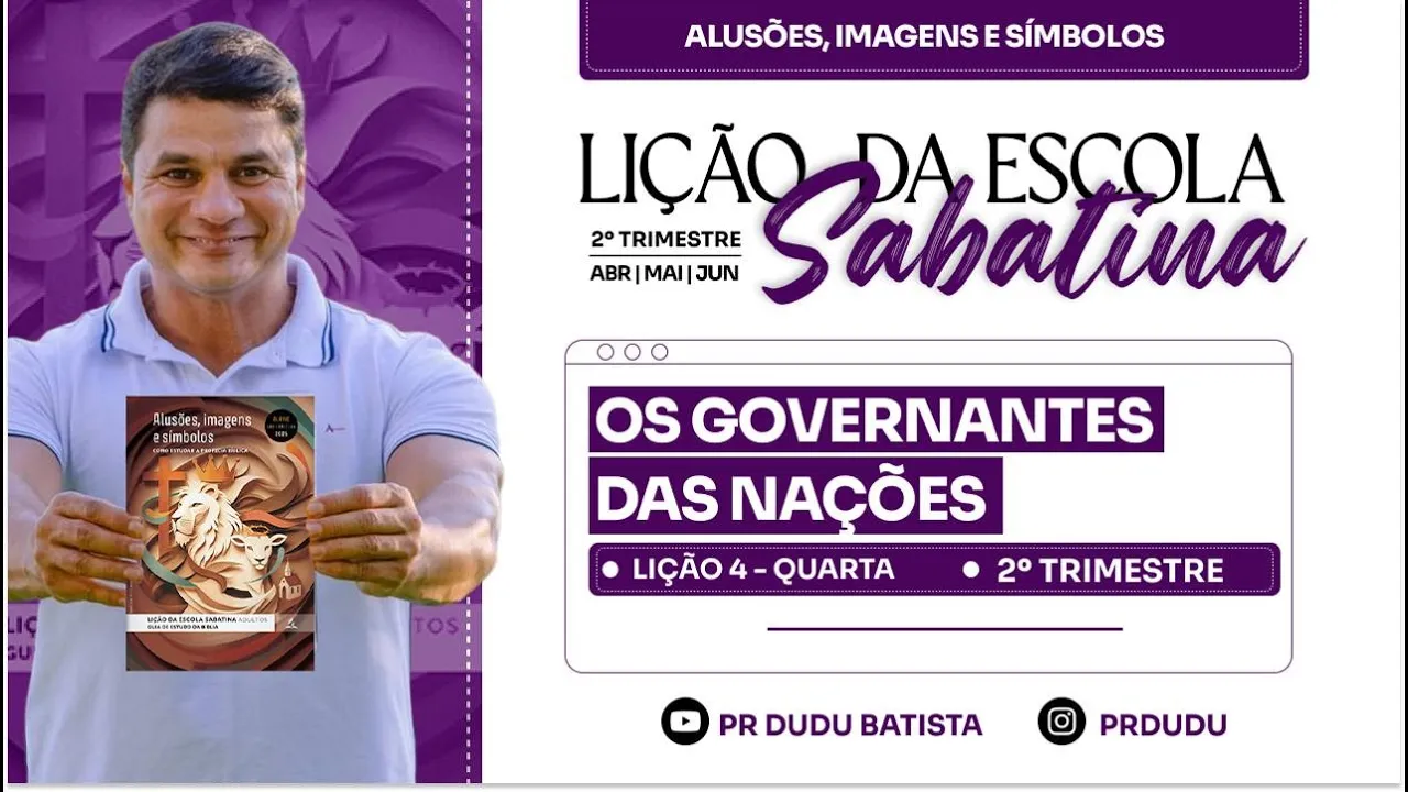 [Música] e aí vamos a lição quarta-feira chegou estamos juntos aqui em nome de Jesus olha o tema da lição de hoje os governantes das nações e ó permita-me fazer um paralelo aqui para compreendermos melhor o assunto de hoje aqui de um lado você tem o povo de Israel aqui você tem a nossa igreja a igreja do Novo Testamento se liga os mesmos padrões de comportamento de Deus para com Israel são os mesmos padrões de comportamento de Deus para com a sua igreja porque Deus não muda o modo como Deus se relaciona com Israel é o