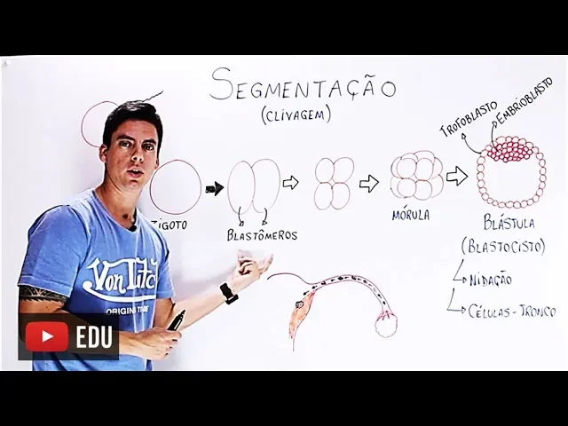 e Fala galera beleza Professor Gustavo aqui de novo e hoje aula tem um pouco mais de 5 minutos porque o assunto é importante ele exige em biologia quer saber tudo sobre nossos movimento embrionário então solta virei de Confere aí ó e Fala galera beleza Professor Gustavo aqui de novo e hoje eu trouxe aqui para vocês um resumo das fases do desenvolvimento embrionário Nossa famosa embriologia o embriogênese galera preste atenção aqui vocês vão que tudo começa com a fecundação EA fecundação ocorre na tuba uterina então quando a mulher libera o seu gameta ele vai ficar esperando