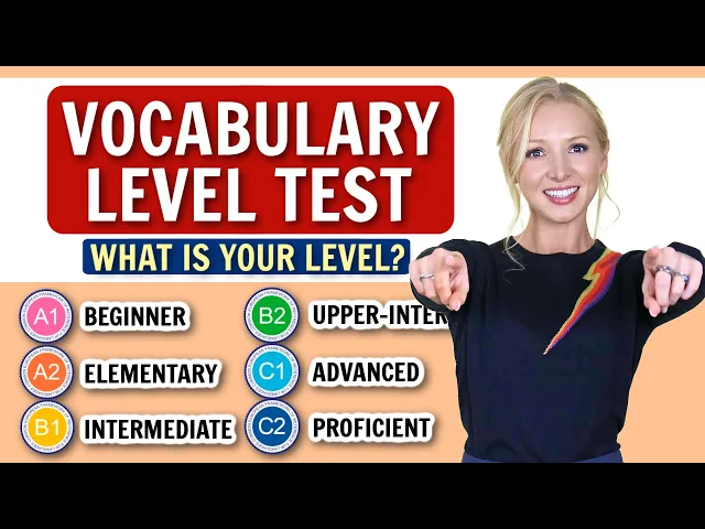 hello lovely students and welcome back to English with Lucy today we are going to work out what your vocabulary level is in English from A1 to C2 it's really important to know what level you are so that you can choose the right learning materials to help you improve if you've been feeling stuck using the same words over and over you might be studying materials at the wrong level in today's lesson I am going to give you a test I'm going to ask you five different vocabulary questions at each level starting from A1 and moving up