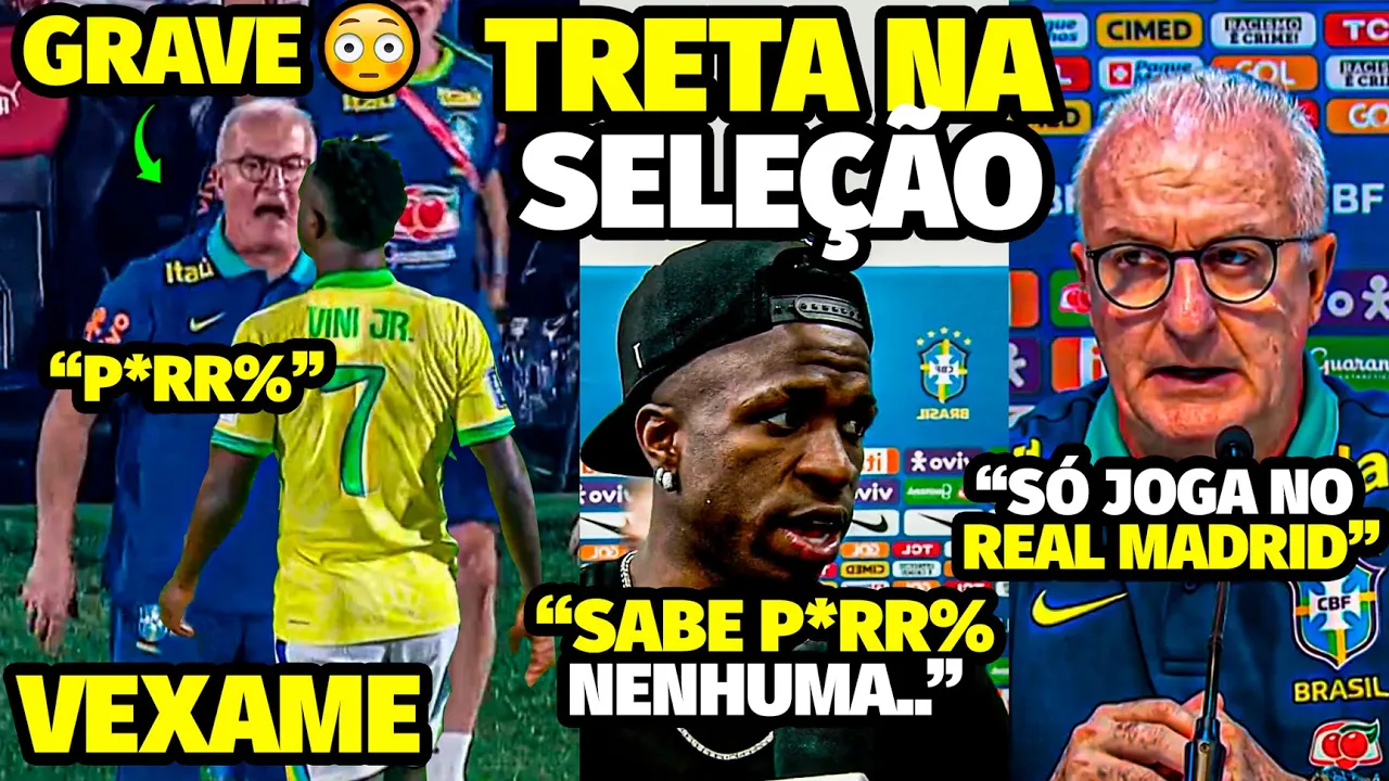salve nação e a Seleção Brasileira hein perdeu o jogo e teve polêmica com Vinícius Júnior e Dorival Júnior criticando o jogador a gente sentiu você um pouco irritado hoje claro que tá sendo um processo muito complicado porque quando a confiança eu acho que primeiro ele tem que retornar dentro do seu Clube até então bora lá então começar a ver o Dorival Júnior e atitude inaceitável entre treinador e jogador Se Liga Aí ó as alterações que nós temos feito muito mais eh eh pelas necessidades nós não tínhamos Rafinha paraa primeira partida perdendo Savinho Praticamente em cima