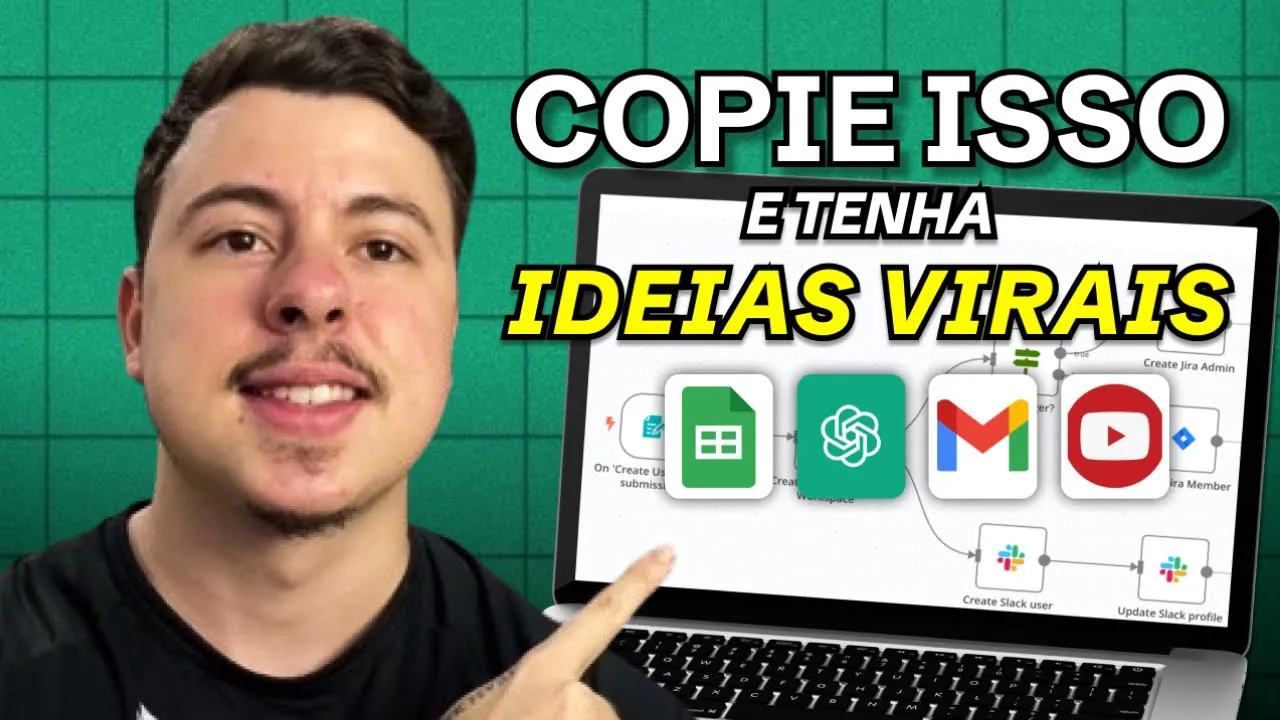 YouTube indicou porque o YouTube ele tem um algoritmo Imagine só ele vai analisar o título a capa do vídeo a quantidade de visualizações tudo isso e vai retornar pra gente de forma prática e a inteligência artificial vai analisar esses vídeos e vai nos retornar um roteiro por e-mail totalmente exclusivo falando pra gente o modelo de título uma análise justificativa do porqu gravar esse conteúdo e um roteiro simples passo a passo isso todos os dias você pode ter essa automação e é isso que a gente vai fazer nesse vídeo também podemos ter aí do Instagram se