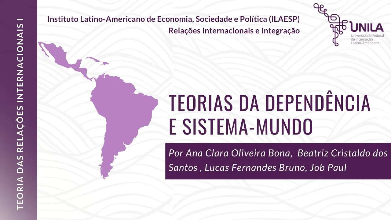 [Música] Hei pessoal nesse vídeo a gente vai falar sobre a teoria da dependência e o sistema mundo eu vou começar falando um pouco sobre a teoria da dependência mas antes de dizer o que é quais foram os precursores eu vou dar uma contextualizada né O que aconteceu naquele período pra gente entender um pouco melhor e eu vou trazer esse contexto até o século XX então e nesse período o mundo estava em constante transformação devido a grandes eventos como a Revolução Industrial a expansão colonial e as duas guerras mundiais e esses eventos Mudaram as relações internacionais