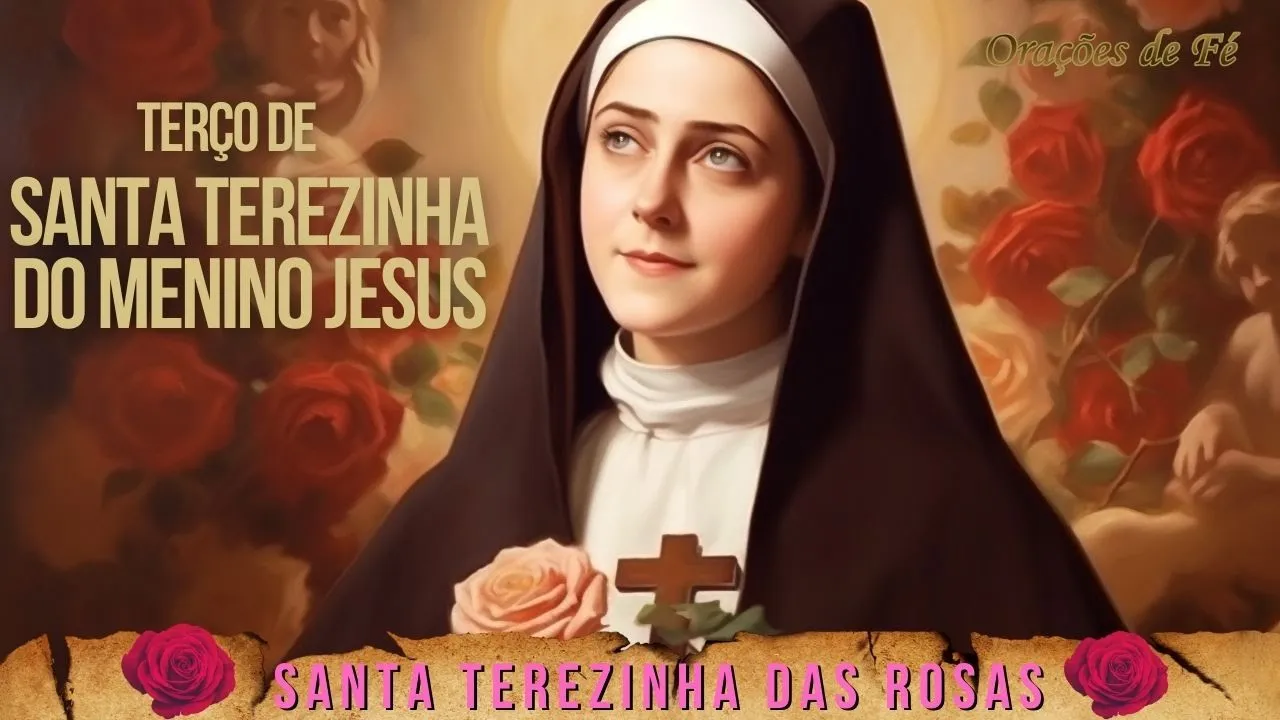 [Música] terço de Santa Teresinha do Menino [Música] Jesus pelo sinal da Santa Cruz livrai-nos Deus senhor dos nossos inimigos em nome do pai do filho e do Espírito Santo amém Creio em Deus Pai todo-poderoso criador do céu e da terra e em Jesus Cristo seu único filho nosso Senhor que foi concebido pelo poder do Espírito Santo nasceu da Virgem Maria padeceu sob Pôncio Pilatos foi crucificado morto e sepultado desceu a mansão dos Mortos ressuscitou ao terceiro dia subiu aos céus está sentado à direita de Deus Pai todo poderoso deonde há de vir a julgar os