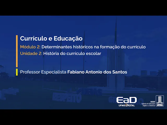 [Música] Olá pessoal tudo bem estamos começando mais uma aula de currículo educação eu sou o professor Fabiano Santos e Nesta aula vamos discutir mais uma questão importante sobre os determinantes históricos na formação do currículo agora a gente vai falar um pouco sobre a história do currículos escolar nas nas unidades anteriores a gente discutiu sobre a escola a importância dela dos conhecimentos também discutimos na última aula sobre o currículo a formação do currículo a importância de pensar o currículo numa relação mais Ampla com o projeto pedagógico da escola com as condições materiais da escola e hoje