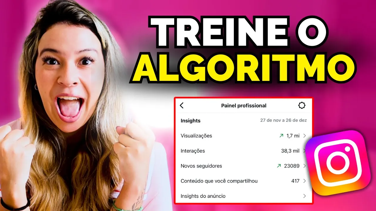se você me acompanha no Instagram Você sabe dessa minha frase Coringa que é trabalhamos com estratégia e não com a sorte nesse vídeo eu vou te passar a minha maior estratégia para fazer o algoritmo do Instagram trabalhar para mim você pode ver no meu Instagram que eu tô sempre ganhando novos seguidores sempre com engajamento alto os meus vídeos sempre pegam boas visualizações porque eu aprendi a fazer o algoritmo do Instagram trabalhar ao meu favor eu aplico isso no meu Instagram eu mando isso também pros meus alunos pros meus clientes para que eles também aprendam a