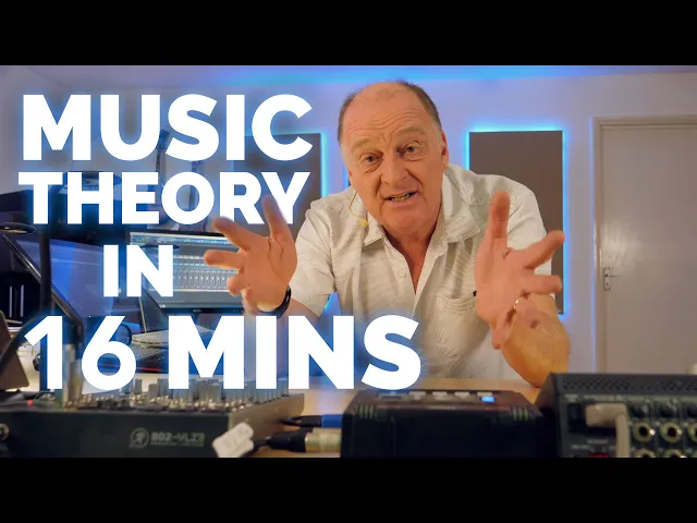 hello friends and today's the day then I'm going to explain all the essential elements of music theory in less than 30 minutes there's a challenge for you okay now there's two halves to music theory there's how music is written down and is how it's organized for most people to start with how music is organized is far more important so we're going to put how it's written down to one side and concentrate on the organization thing now this is a note now as most of you probably know sound is caused by vibration the faster vibration the
