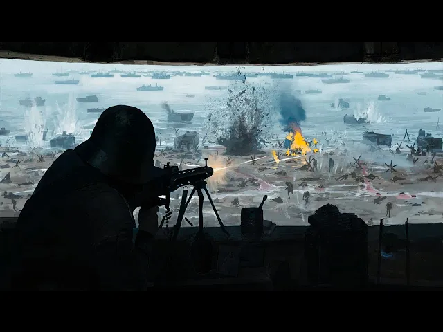 Heinrich already had the first group of disembarking soldiers in range. Still, he waited until the water covered them up to their knees to make them easier targets. Before long, more landing craft began to arrive, each carrying more than 30 men.