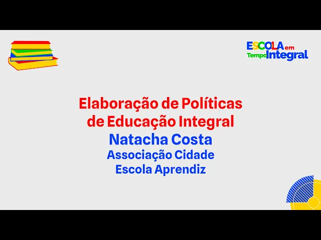 [Música] Olá pessoal tudo bem meu nome é Natasha Costa eu sou diretora geral da associação Cidade Escola Aprendiz eh organização que coordena o centro de referências em educação integral e venho Hoje procurar contribuir eh com o curso de formação continuada dos secretários e equipes técnicas de secretarias de educação da região Sudeste no âmbito do programa escola em tempo integral e hoje meu tema vai ser a elaboração de políticas de educação integral em tempo integral e a questão da intersetorialidade da relação escola território bem acho que o primeiro ponto importante da gente conversar é sobre a