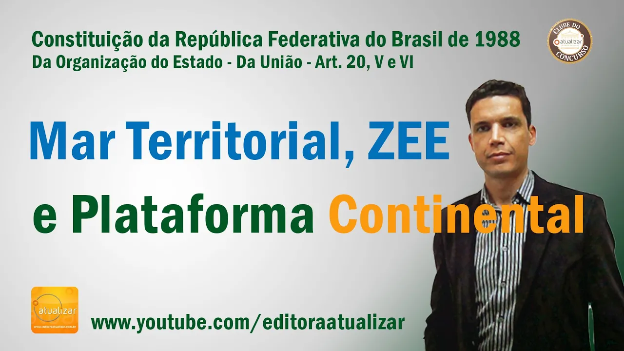 [Música] de volta com o nosso curso de Direito Constitucional de volta com os bens da união artigo 20 inciso 5to e inciso sexto questões importantes tá questões que geram também uma curiosidade muito grande por parte de todos que estudam a matéria tá o que que a gente vai falar aqui ó artigo 20 São bens da união inciso quinto os recursos naturais da plataforma continental e da zona Econômica exclusiva inciso sexto o mar territorial o que que é isso Professor onde que eu encontro a regulamentação referente a esses conceitos né então Vamos por partes tá primeira