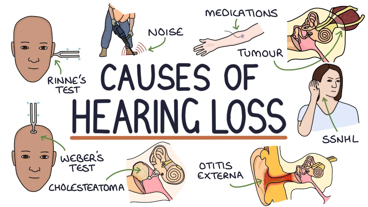 foreign [Applause] [Music] ers.com in this video I'm going to be going through hearing loss and you can find written notes on this topic at xerodifinals.com hearing loss or in the ear nose and throat section of the zero to finals surgery book so let's jump straight in there are two main categories of hearing loss conductive hearing loss and sensory neural hearing loss conductive hearing loss relates to a problem with sound traveling from the environment into the inner ear the sensory system may be working correctly but the sound is not reaching the sensory system an example of