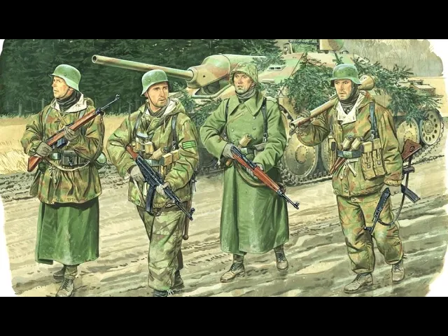 [Music] When we think about the last month of World War II in Europe and the German armed forces, the impression given is that the German army had been reduced to exhausted and threadbear divisions, barely able to resist the steamrollering juggernaut of Allied armies surging ing into the heart of Germany from east and west. This picture is fairly accurate. And on the Western Front in particular, due to the strains of fighting to stop the Soviet assault in the east, the threadbear German forces facing the American, British, Canadian, French, and Polish forces had become very weak and illequipped.