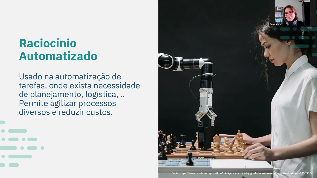 como exemplo mais simples né O que vem a cabeça consequência de raciocínio um computador jogando ele está raciocinando né quando a gente está jogando contra a gente ele tá raciocinando né então um exemplo clássico né de um robô jogando xadrez né então ele fica analisando as possibilidades de jogadas nossas e se coloca contra elas né Então faz jogadas que o levam a Vitória e hoje em dia a gente não ganha mais do computador em xadrez Ah mas eu ganho quando eu tô jogando porque ele deixa tá tem vários níveis que são configurados para isso para