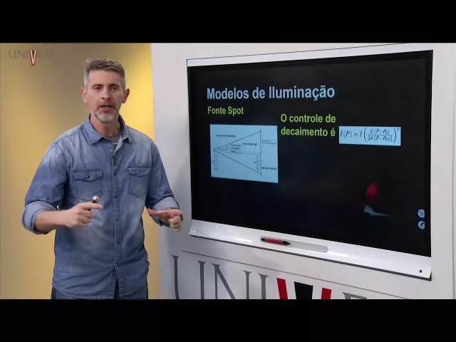[Música] o [Música] olá a todos sejam muito bem vindos à nossa 4ª aula aqui no curso de computação gráfica de engenharia da computação aqui da univesp nessa aula a gente vai tratar sobre modelos de iluminação e ea gente vai tentar então é dentro do nosso espírito aqui de transformar dados biométricos e imagens né a gente vai tentar simular o comportamento da luz ea reflexão da luz nos objetos o objetivo então desci desse processo desses modelos é a produção de imagens mais foto realísticas possível ser mais comparáveis a uma imagem é real é possível aí para