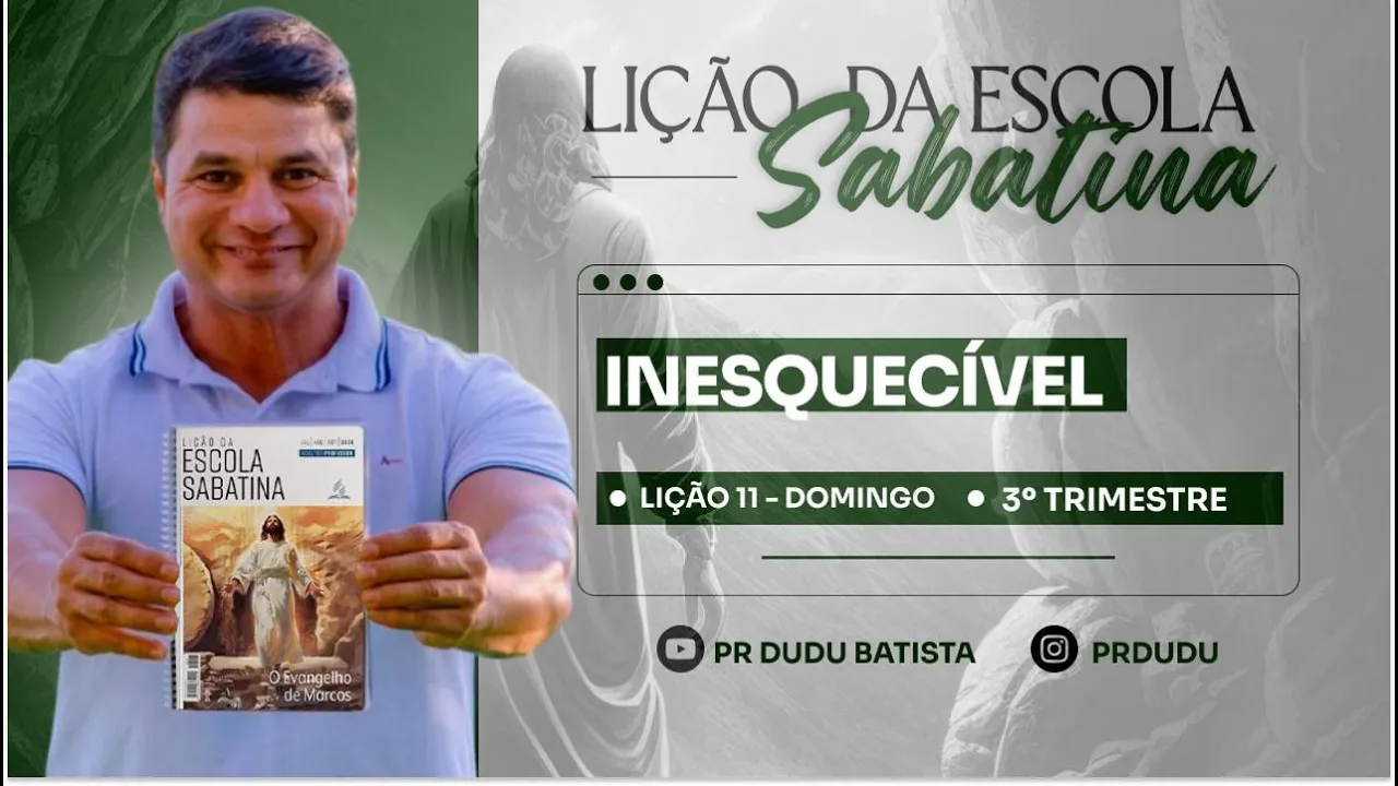 E aí vamos estudar a lição olha o domingo aí adante de nós Eu espero que você tenha estudado o conteúdo de ontem sábado dá uma recapitulada Não esqueça de compartilhar o conteúdo de hoje também com todos os teus amigos nas redes sociais Aproveita e se inscreva no canal do YouTube PR Dudu Batista lá no Instagram siga-nos @pr Dudu e no Facebook você já sabe PR Eduardo Batista da Silva aproveito para reforçar aquele convite estamos com as últimas vagas paraa nossa viagem de Israel e Egito em fevereiro do ano que vem olha aqui o WhatsApp aparecendo