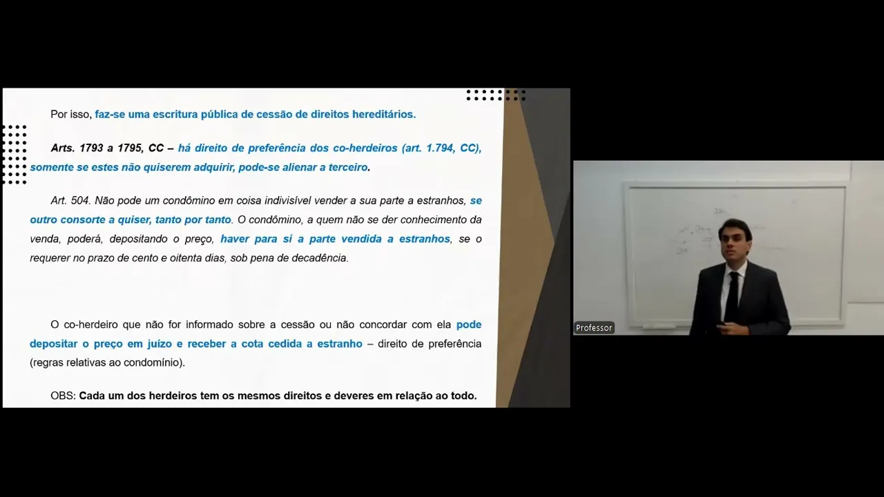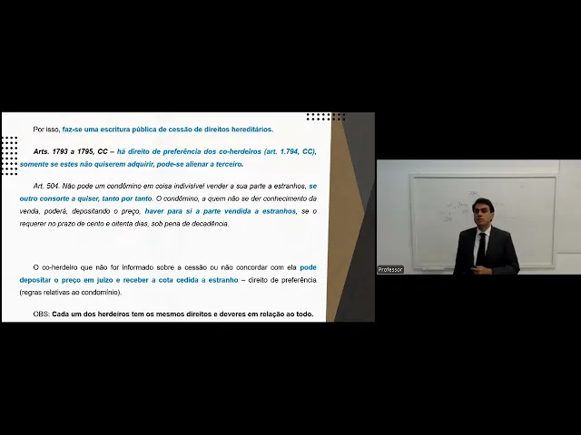 portanto a esse essa extensão de direitos em relação a quem comprou perfeito pessoal paramos por aqui direito de preferência do cordeiro Então nós vamos falar falar na próxima aula sobre o direito de preferência E aí nós já engatamos para a abertura do inventário perfeito permaneça disposição pessoal Muito obrigado Bons estudos e até a próxima aula até mais