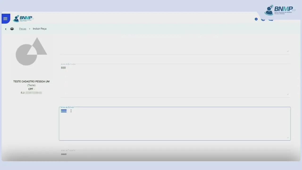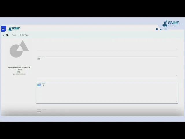 [Música] para lançamento desta peça é necessário o cadastro prévio do mandado de monitoramento eletrônico comatus comprido para localizar o cadastro da pessoa em pessoas cadastradas Clique na opção ver todas no campo pesquisar digite o nome da pessoa ou outro dado conhecido e Clique na lupa identificada a pessoa clique no menu localizado no canto direito da tela e selecione a opção incluir peça em dados da peça selecione a opção revogação parcial mandado de monitoramento eletrônico cautelar escolha o número do processo referente ao mandado alcançado pela revogação insira o motivo da expedição verifique se o total de