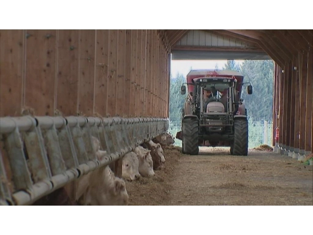 réduite c'est de l'élevage intensif hors sol puisqu'ils ne sont pas en pâure donc il y a un réel mal-être animal à ce niveau-là mal-être animal également dû à l'alimentation contre nature justement encore une fois pour faire grossir le plus rapidement possible ils vont prendre 1,5 par jour mais pour Gilbert Mazo les animaux ne sont pas malades et leur régime sans OGM est équilibré il y a rien à cacher là-dedans donc vous voyez de la paille pour la fibre c'est un ruminant ces petits grain jaune c'est du maïs écrasé du blé la pulpe de betterave ils