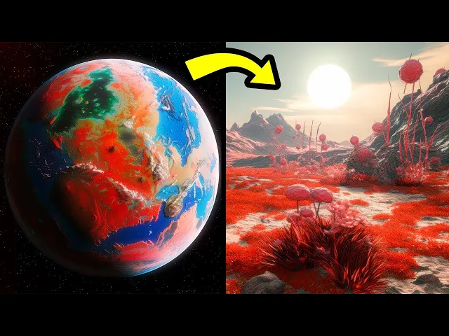 0 it's at a very similar distance to its hostar as Earth is to our sun 97 million miles to Earth 93 million however the gtype star it orbits is 11% larger and with more eyes on on 452b the planet's surface temperature is somewhere between 80° F and 143° F hotter than Earth but still within the range for liquid water to exist on its surface 452b is also 60% larger than our planet which is great news why because planets that are larger than Earth can retain their interior Heating and atmosphere for a longer time period holding on to any oceans it might have for longer too the only problem is that it might not be superh habitable for much longer its host star Kepler 452 is some 6 billion years old and of similar size to the sun however being further along in its Stellar life means the habitable zone of this system is being pushed further and further out with 452b just skirting the inside of this all important Zone the planet likely only has another 500 to 900 million years of habitability left before it becomes too hot to sustain life such a shame no wonder 452b doesn't show up to family events terrestrial twin speaking of families it turns out Earth also has a long lost twin yep there's an exoplanet out there that's practically identical to earth and its name is Koi 48781 Koi stands for Kepler object of Interest this means that it's yet to be confirmed as a planet since planetary signals can sometimes be confused with other activity like solar flares but if it is it'll give Earth a run for its money located 6 quadrillion miles away in the constellation of Drco no not that Drco this koi is 98% similar to Earth especially when it comes to size and temperature to work out the radius of other exoplanets Earth's radius is The Benchmark it measures 3,963 Mi which is 1 earth radius the koi is 5 % larger with 1. 05 Earth radius equal to over 4,161 Mi this is an ideal size for a super habitable planet bigger than Earth but not so big that it's likely made up of gas like Neptune although this koi actually has a hotter host star a gtype with temperatures that range from 10,000 to 13,000 de F its median surface temperature is just 60° F that sounds chilly but as I mentioned earlier Earth's average temperature is 59° f just 1° out it's getting hard to tell these twins apart move over Mars imagine waking up one day and looking out your window to see red plants red leaves red trees red grass red everywhere this is what life would look like on the surface of Kepler 186f why aren't the plants green here well this is due to 186 F's hostar are being cooler and redder than our hot yellow sun meaning plant life on the exoplanet would likely have adapted to utilize the Red Wave light though it may be different in color a study in 2018 suggested that 186f might have seasons and a climate similar to Earth plus it orbits within the goldilock zone of its planetary system so-called because conditions for life are not too hot or not too cold essentially making it The Sweet Spot of any habitable zone well aside from all all the red it sounds like a perfectly habitable planet but there could be signs that things are already living there yep 18 186f is a planet of deep interest with Scientists continuing to explore this world for extraterrestrial life one report shows inconclusive but optimistic signs in the radio noise received from the planet these radio emissions were captured by the Allen telescope array where scientists analyze the signals given off by the planet while radio waves emitted by planetary systems usually come from the interactions between the matter and electromagnetic fields of planets and stars certain patterns in the Radio Data from 1 186f were interpreted by some researchers as potentially indicating an intentional broadcast signal in other words signs of extra terrestrial technology however sadly the data is extremely open-ended and the conclusion is not widely accepted as any patterns were not repeatable and likely coincidental if anything is living there though let's just hope they aren't face huggers though we'll likely never know as even traveling at 430,000 mph it would also take over 900,000 years to reach it in the constellation of sness which is 580 light years away looks like we can put that next alien sequel on Hiatus Nature's calling now there are tens of thousands of Kepler object of interests out there but koi 555 4. 01 might just be the most interesting of all of them this is because it's a possible super habitable planet with perfect conditions for life it's in a prime age of roughly 6 1/2 billion years it also has a similar orbital period to Earth 362 days as well as an earth radius of .