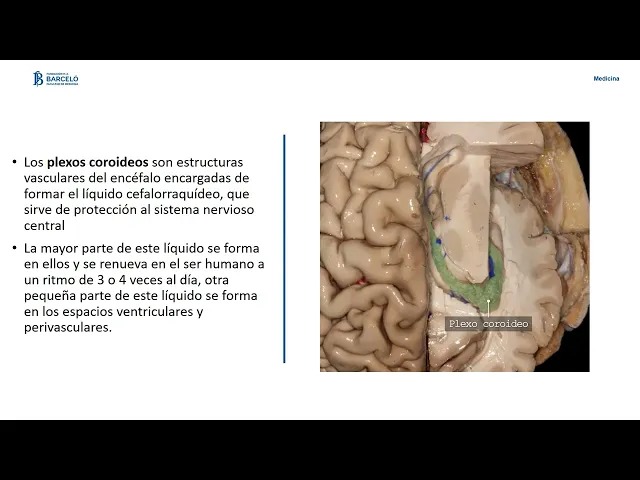 un poquito del concepto y definición de este líquido cefalorraquídeo ahí se puede ver en un corte sagital de el encéfalo y señalado con la flecha roja podemos ver los plexos coroides los plexos coroideos son las estructuras que nos permite a nosotros poder generar ese líquido cefalorraquídeo como les decía en los plexos coloides Son estructuras vasculares del encéfalo encargado de generar ese líquido cefalorraquídeo que sirve de protección al sistema nervioso central la cantidad de líquido cefalorraquídeo que se produce este por día es más o menos entre 90 y 140 mililitros y es un líquido que a