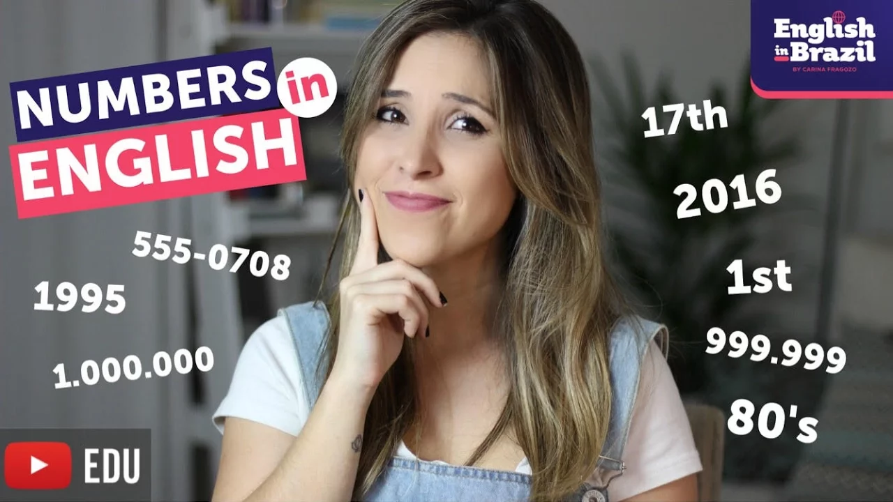 [Música] Hi I'm Karina and today we are GNA talk about numbers mas numbers Carina isso é muito fácil isso eu já sei mas será que já sabe mesmo os números em inglês podem ser bem complicadinho assim no que diz respeito a pronúncia por exemplo porque às vezes a gente quer dizer um número e fala outro e também tem muitas regrinhas específicas assim para falar números de telefone para falar sobre datas e então no vídeo de hoje eu vou tentar englobar o máximo possível sobre números em inglês então continua assistindo que de repente não seja tão