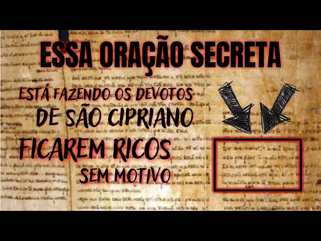 [Música] Olá gente tudo bem sejam muito bem-vindos ao canal e no vídeo de hoje atendendo a milhares de pedidos eu vou finalmente compartilhar com vocês uma oração secreta original de Cipriano quer considerada por alguns especialistas como uma das mais fortes e poderosas do Santo mago de todos os tempos Essa oração que eu vou te ensinar hoje é tão poderosa que foi escrita em códigos secretos para que não caísse em mãos erradas e fosse usada para o mal porém recentemente espiritualistas renomados conseguiram decifrar e traduzir o seu texto quando esse texto é proferido por Devotos de