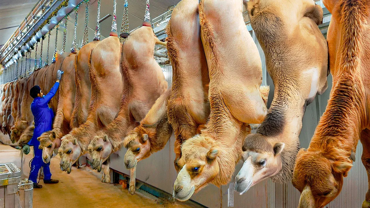 camel calves and adult camels allowing them to move freely [Music] have you ever tried a camel milk product before we are in a separate milking area where the process is carried out by experienced herders [Music] [Music] camel meat is also known for its rich flavor leaving a lasting impression on those who have tasted it processing camel meat in the factory requires a combination of modern technology and strict hygiene standards to ensure quality and food safety after being neatly trimmed each piece of meat is conveyed to the packaging machine which will automatically complete its task in