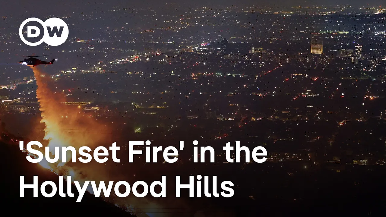 firefighting efforts in the coming days but as the blazes rage out of control the extreme risk to life and property will remain and we can now speak to DW reporter Stefan Simons who is in Los Angeles Stefan I understand that you're on the edge of what's being called the sunset fire near the Hollywood Hills describe the situation there for us well you're absolutely right this is where we are Sunset fire Hollywood Hills very Posh neighborhood very affluent area here of course Hollywood Hills and uh those folks here right behind me were the last ones who
