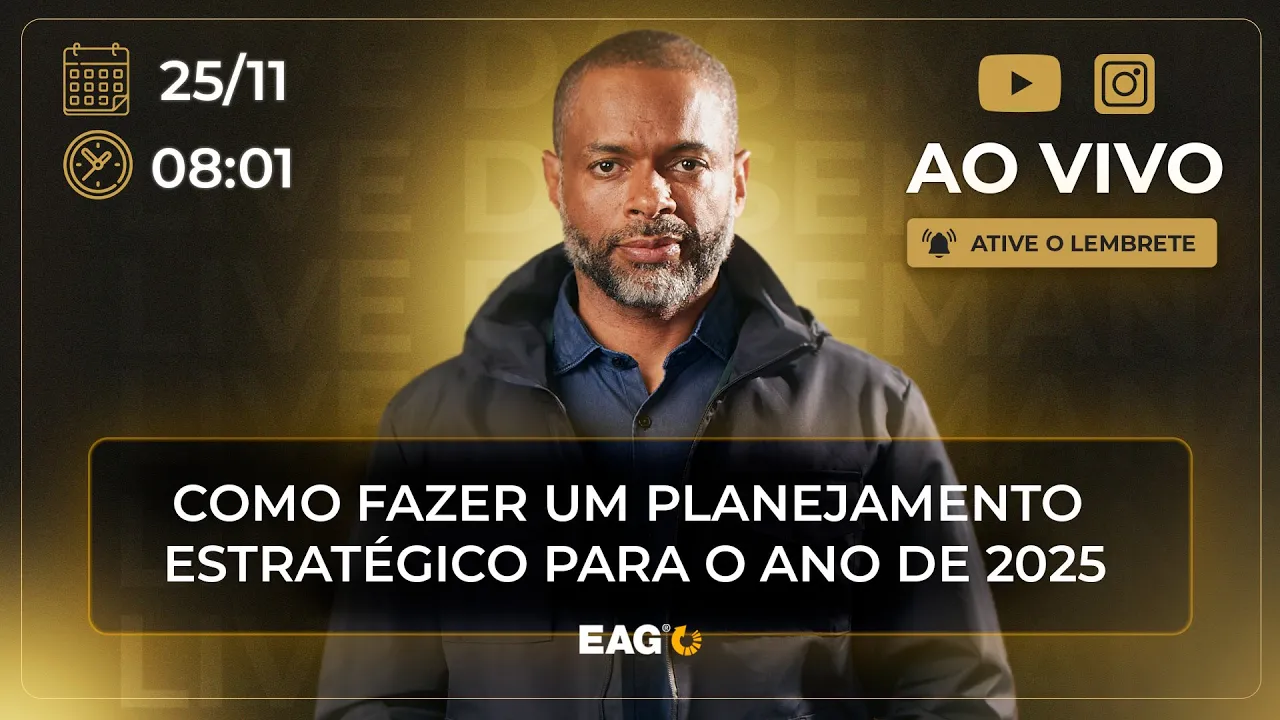 empresa você não pode fazer isso na sua empresa você que começa com uma antecedência normalmente no mês de outubro ou no mês de novembro você vai se reunir com o seu time para fazer um planejamento estratégico E é isso que eu vou vou te falar qual o objetivo de você fazer um planejamento estratégico é você ter mais tranquilidade mais paz no coração mais clareza do que precisa ser feito para você B bater as suas metas e atingir os seus resultados Então antes da gente destrinchar essa esse conteúdo aqui queria fazer uma pergunta para vocês tá