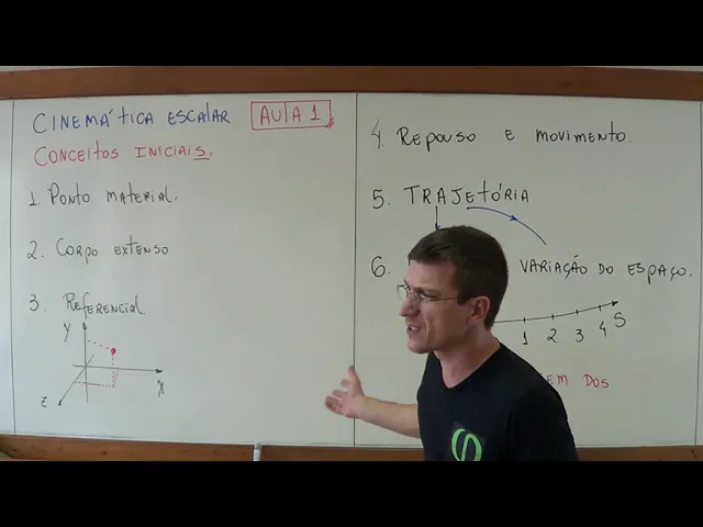 Fala galera tudo bem Galera eu sou o professor Marcelo boaro sou professor de física nesse momento meu querido minha querida tô gravando vídeoaulas de cinemática tô começando a cinemática escalar tá vou fazer cinemática escalar depois eu vou fazer a cinemática vetorial parte que envolve vetores fazer depois tá bom cinemática escalar Essa é a aula um vou discutir uns conceitos iniciais pra gente poder falar de velocidade média e prosseguir nossos estudos ok muito bem então eu vou fá para você definição de ponto material corpo extenso referencial vou discutir com você o conceito de repouso e movimento