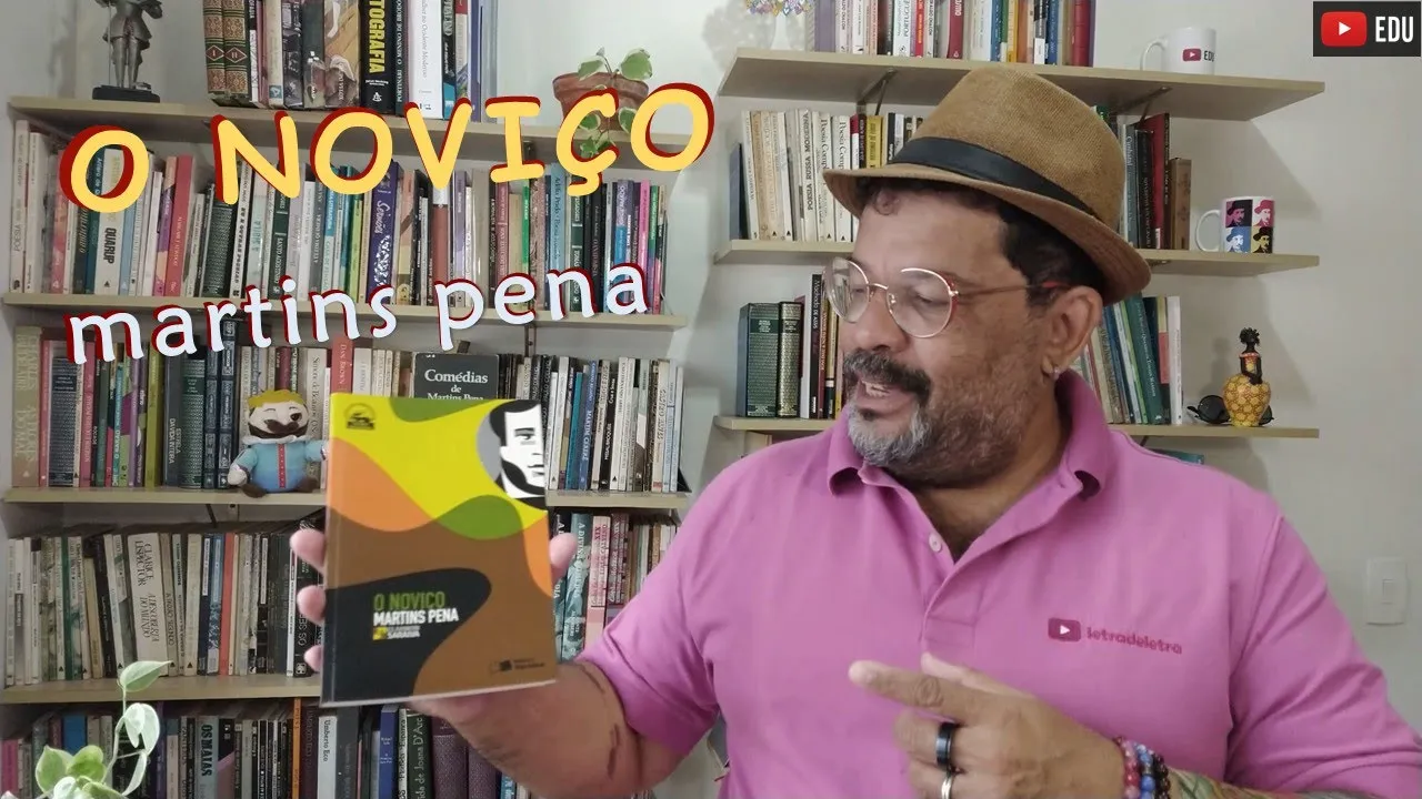 o Olá seja bem-vindo eu sou Carlos Henrique carneiro e hoje tratamos de uma comédia romântica um livro marcante do século 19 da literatura brasileira que é este o noviço Martins Pena em 1845 acontece a primeira apresentação dessa peça o noviço é um texto divertido como usar se diz uma comédia arte cênica texto para teatro o leitor vai reparar nas rubricas que aparecem ao longo da peça logo depois do nome do personagem aparece algumas vezes um parênteses e nele uma indicação de atitude como por exemplo a parte para todos entra correndo faz um gesto enfim os