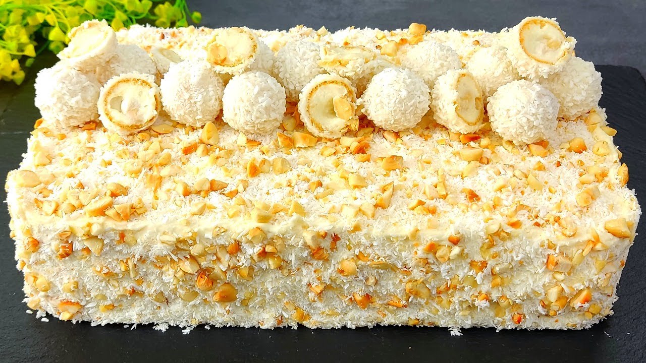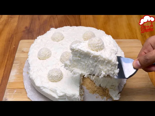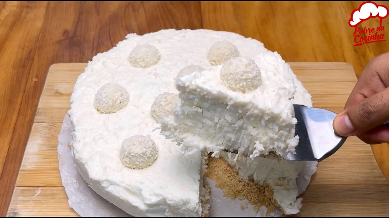 de uma colher Espalhe muito [Música] bem por cima utilizei bombom Rafaelo para decorar a quantidade Fica do seu [Música] gosto e feito isso é só a gente pegar levar a geladeira até gelar e agora pessoal é só a gente cortar e se deliciar e olha só que torta deliciosa faça na casa de vocês que eu tenho certeza que todos vão amar uma receitinha super rápida fácil e deliciosa espero que vocês tenham gostado essa foi mais uma receitinha aqui do pobre na cozinha aquele forte abraço até a próxima e [Música] valeu